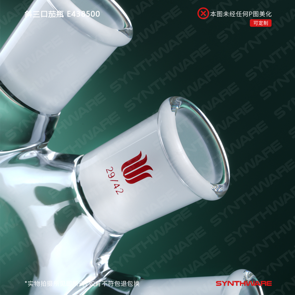 斜三口茄瓶,厚壁高强度,中间磨口:29/42,侧磨口:29/42,500ml E438500