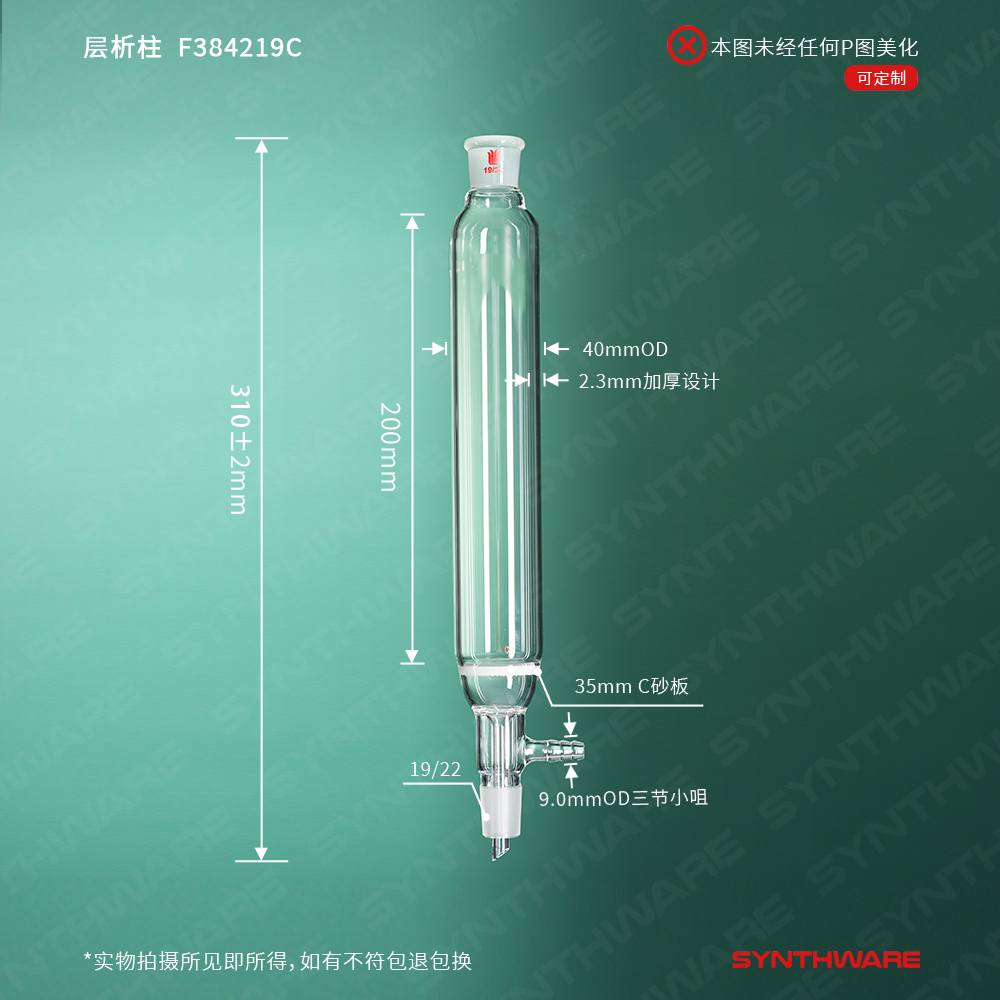 具小嘴减压层析柱,上下磨口19/22,管径:40mm,管长:200mm,C F384219C
