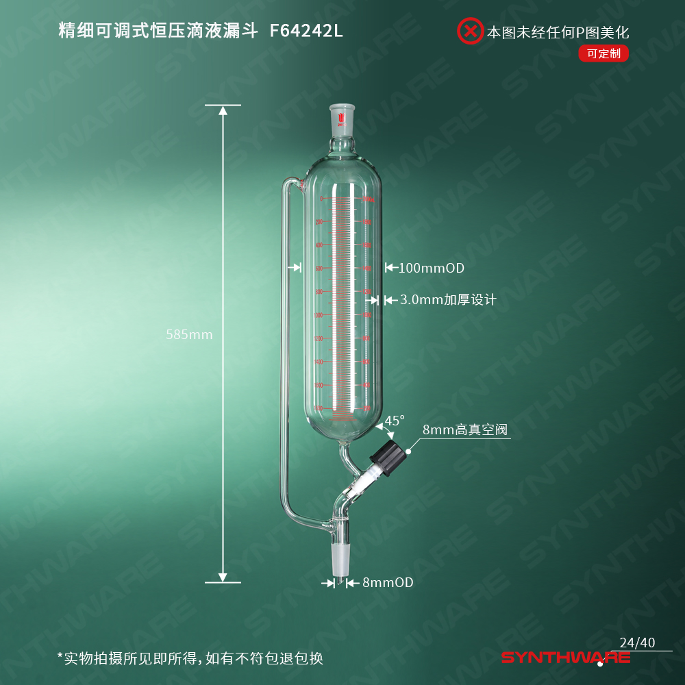 精细可调式恒压滴液漏斗,新型4mm高真空阀,60ml,24/40 F642460Y