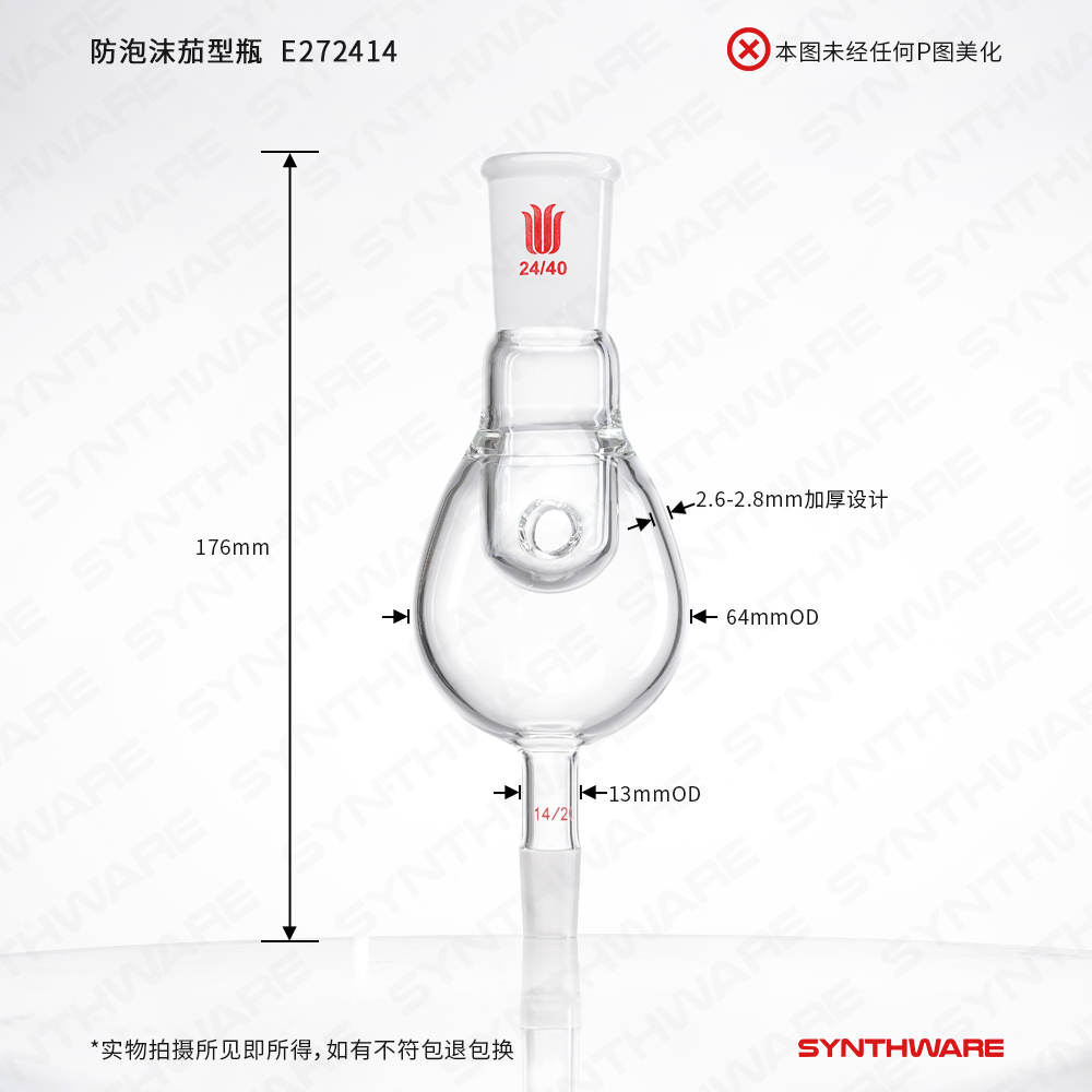 防泡沫茄型瓶,上磨口:24/40,下磨口:14/20,100ml E272414