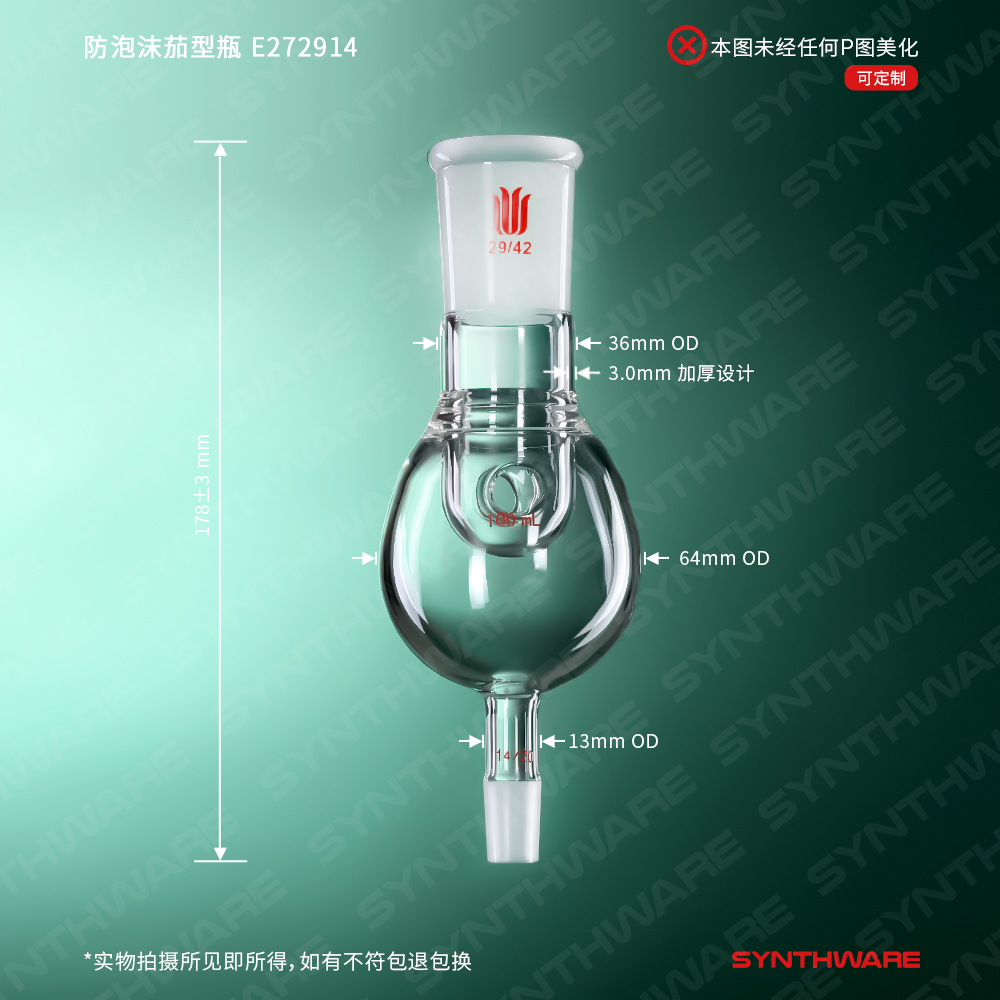 防泡沫茄型瓶,上磨口:29/42,下磨口:24/40,100ml E272924