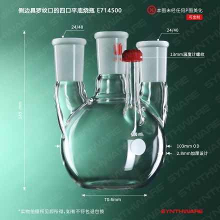 侧边具罗纹口的四口平底烧瓶,中心磨口:24/40,侧磨:24/40,500ml E714500 E714500