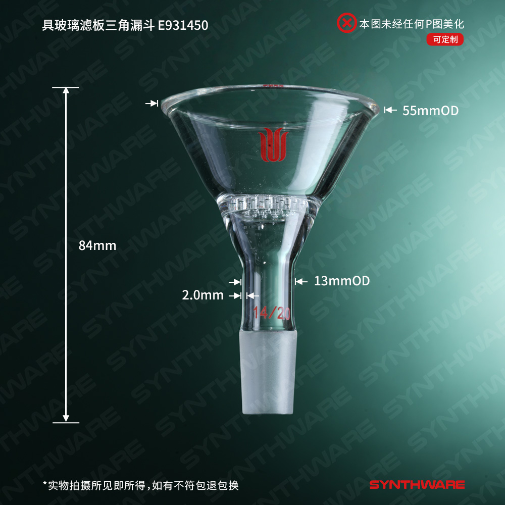 具玻璃滤板三角漏斗,磨口:14/20,砂板直径20mm漏斗上口外径50mm E931450