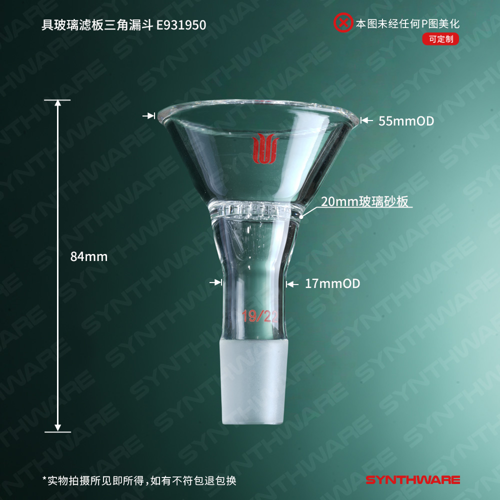 E931975具玻璃滤板三角漏斗,磨口:19/22,砂板直径20mm漏斗上口外径75mm
