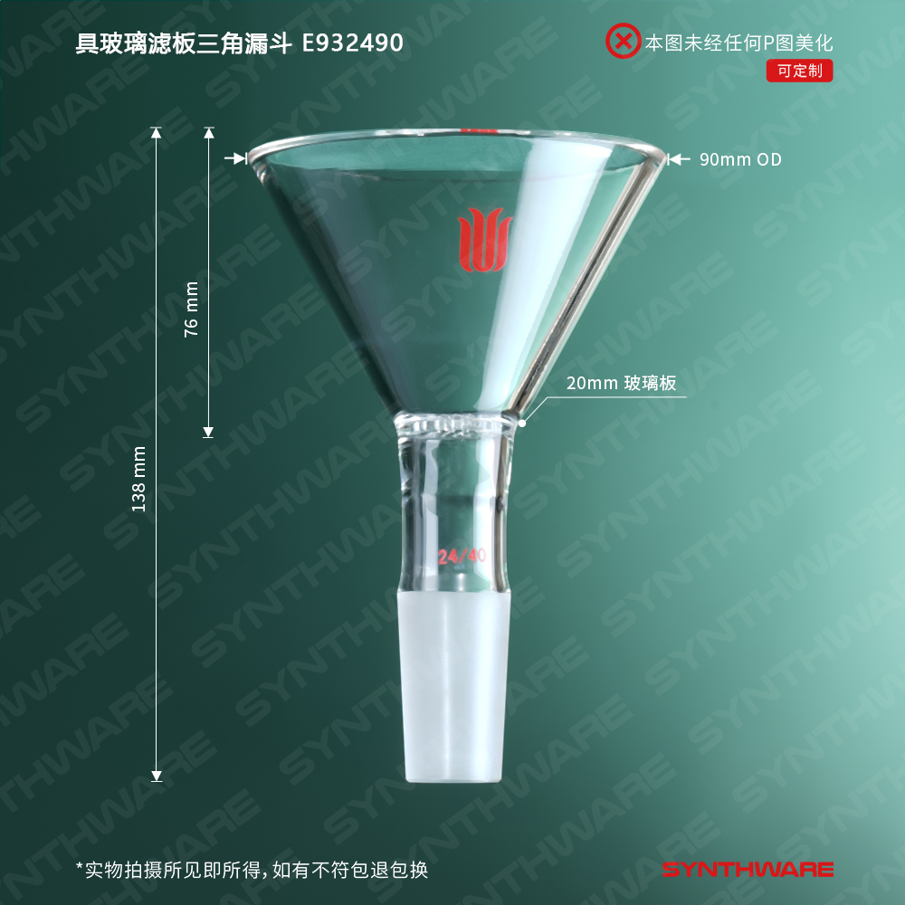 具玻璃滤板三角漏斗,磨口:24/40,砂板直径20mm漏斗上口外径90mm E932490