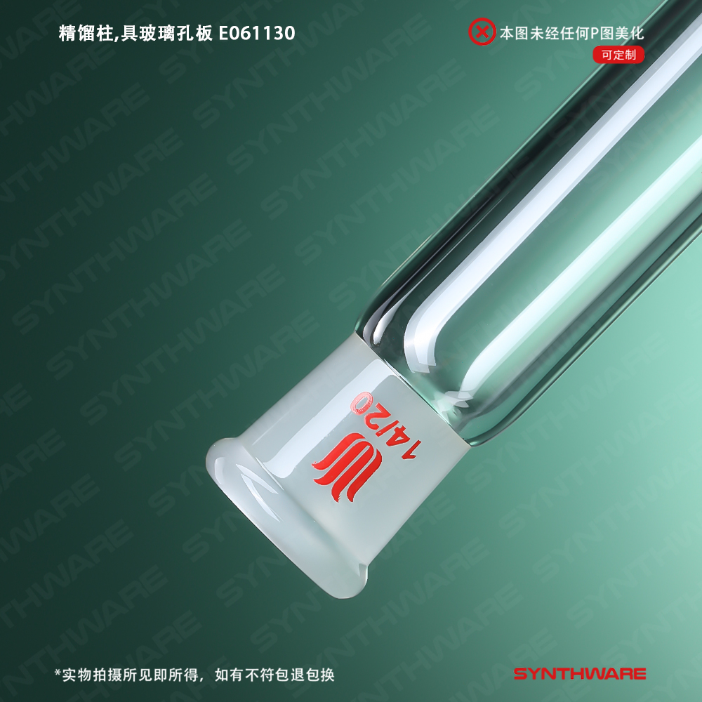# 精馏柱上端内磨口由金刚砂研磨,锥度1:10经正弦规测试。下端外磨口由高精度无心磨制得,加厚设计,不易裂开,保证气密性。