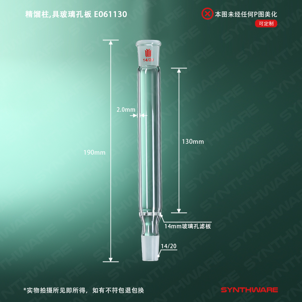 精馏柱,具玻璃孔板,磨口:14/20,有效长度:130mm E061130