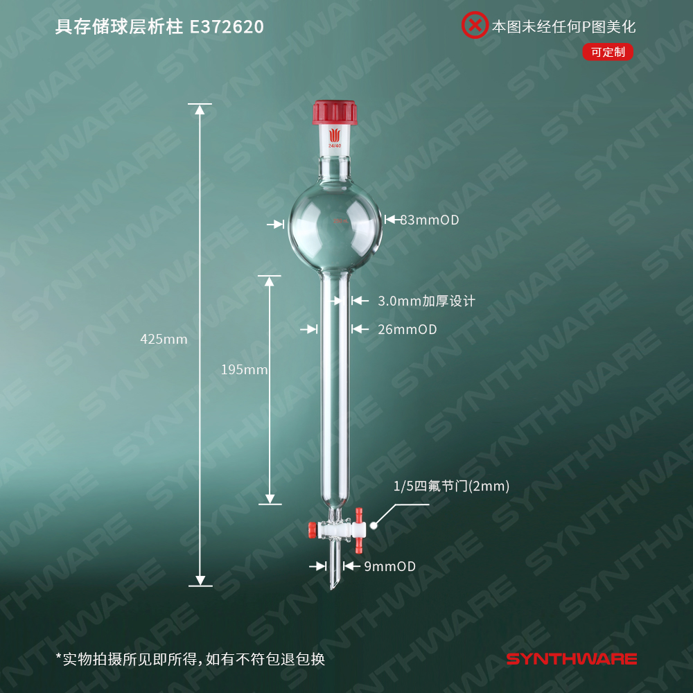 具存储球层析柱,外螺纹口24/40,φ26mm,有效长203mm,存储球:250ml E372620