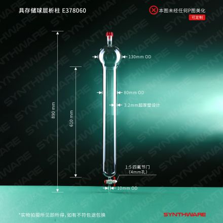 层析类 > 具存储球层析柱 > 外螺纹口 > SYNTHWARE > 具存储球层析柱,外螺纹口24/40,φ80mm,有效长610mm,存储球:1000ml E378060