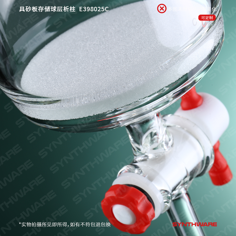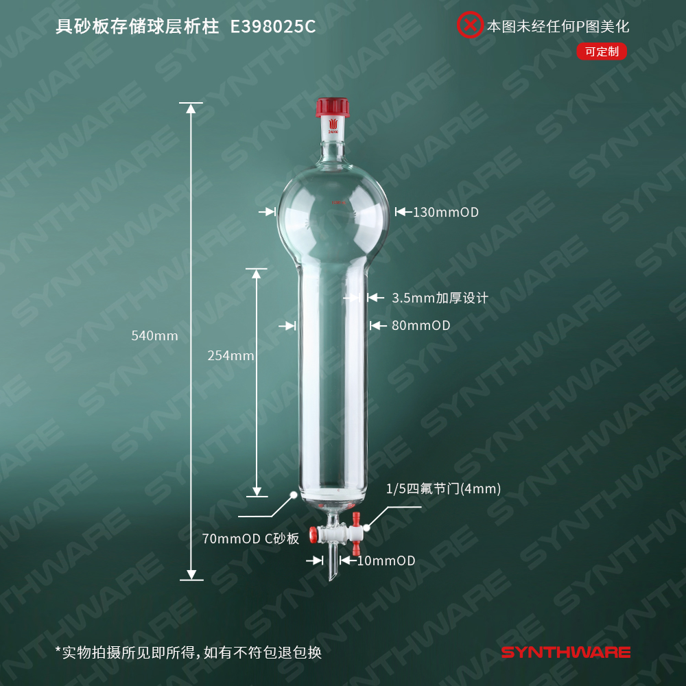 层析类 > 具存储球层析柱 > 外螺纹口 > SYNTHWARE > 具砂板存储球层析柱,外螺纹口24/40,φ80mm,有效长254mm,存储球容量1000ml E398025C
