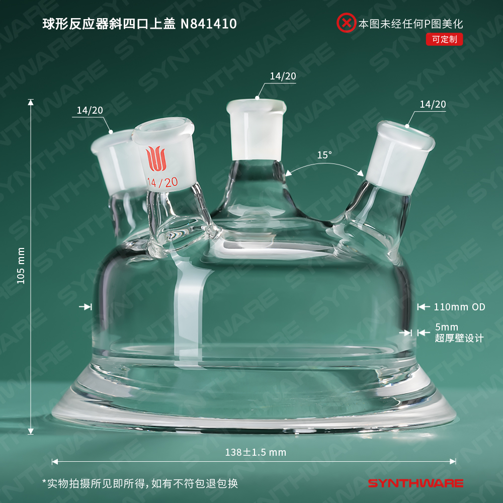 球形反应器斜四口上盖,主口14/20,侧口14/20,前口14/20,法兰100# N841410