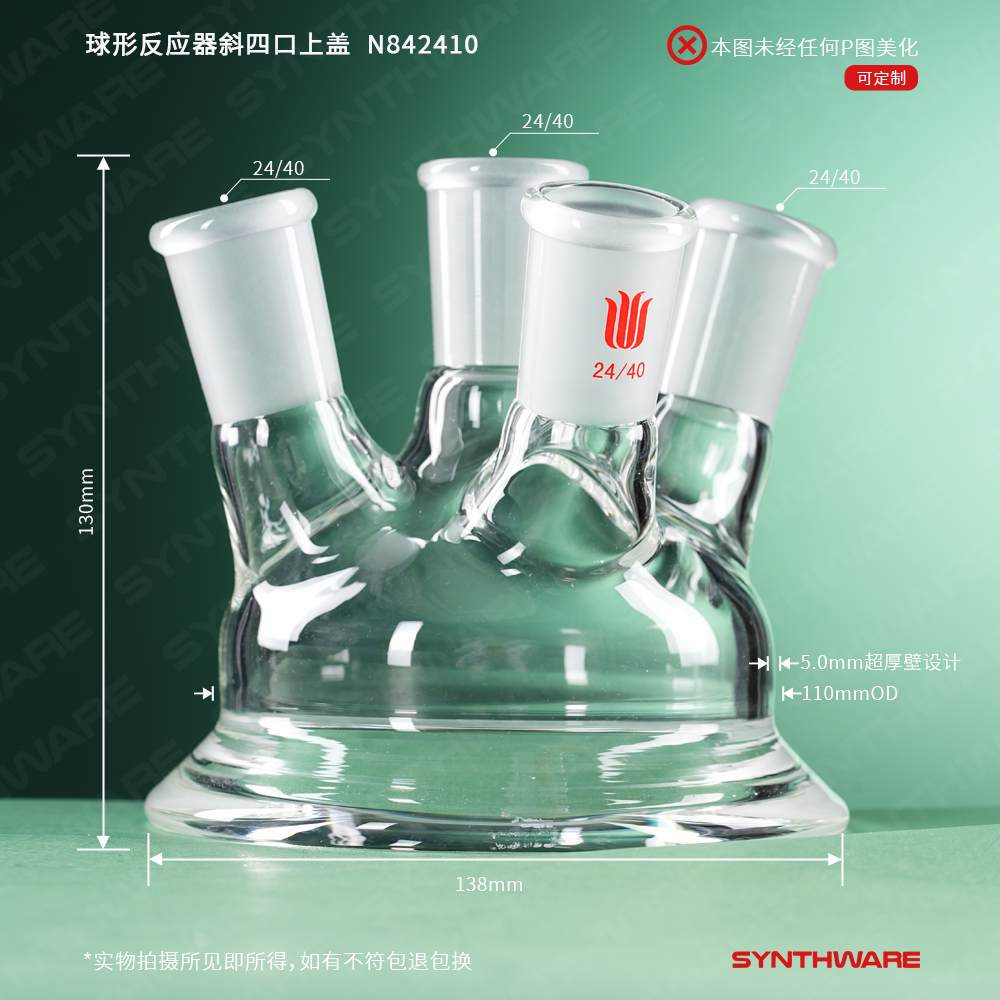 球形反应器斜四口上盖,主口24/40,左侧口24/40,右侧直口24/40,前口24/40,法兰100# N842410Z
