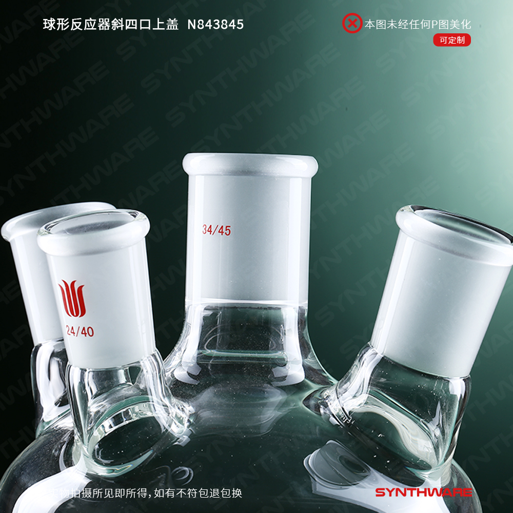 球形反应器斜四口上盖,主口24/40,侧口19/22,前口19/22,法兰100# N844910