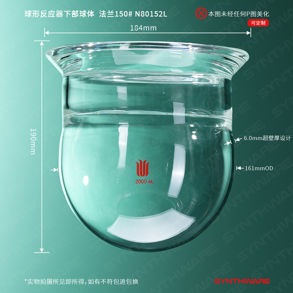 球形反应器下部球体,容积2000ml,法兰150# N80152L