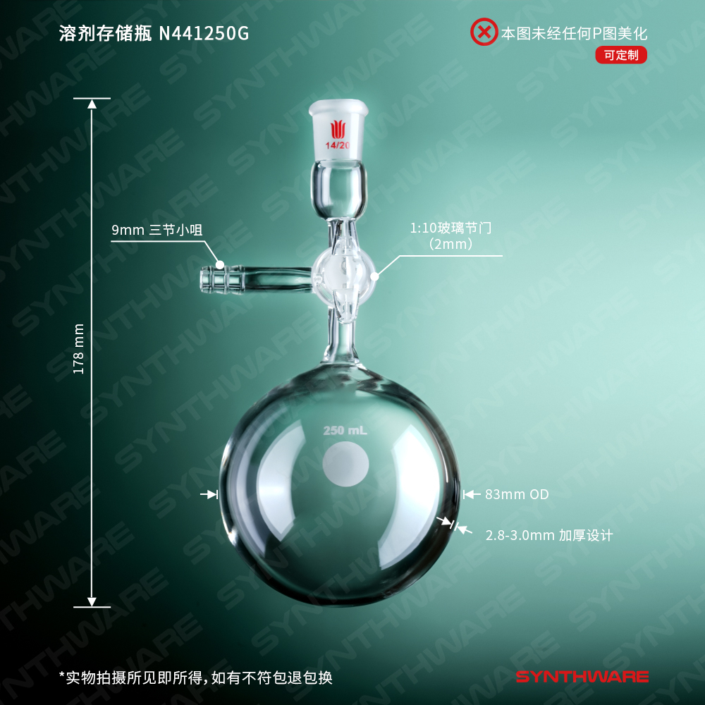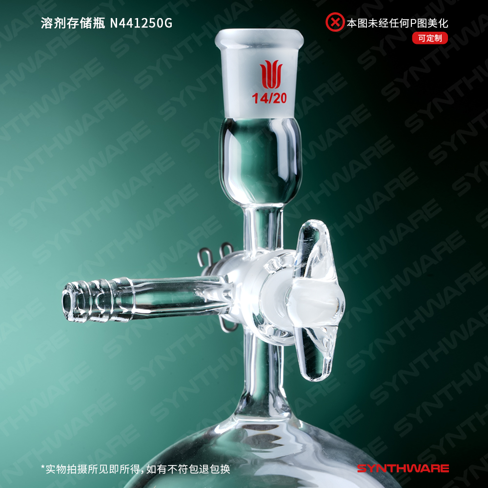 溶剂存储瓶,2mm四氟节门,250ml,14/20 N441250S