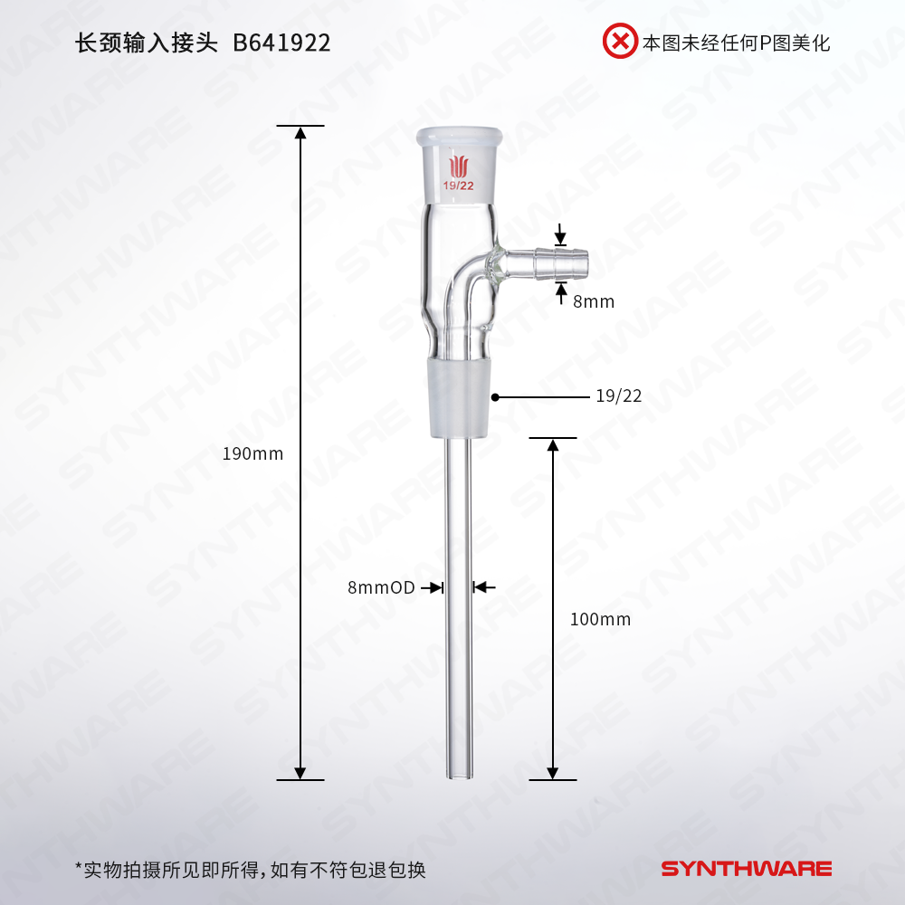 长颈输入接头,19/22,磨口下端管长:100mm B641922