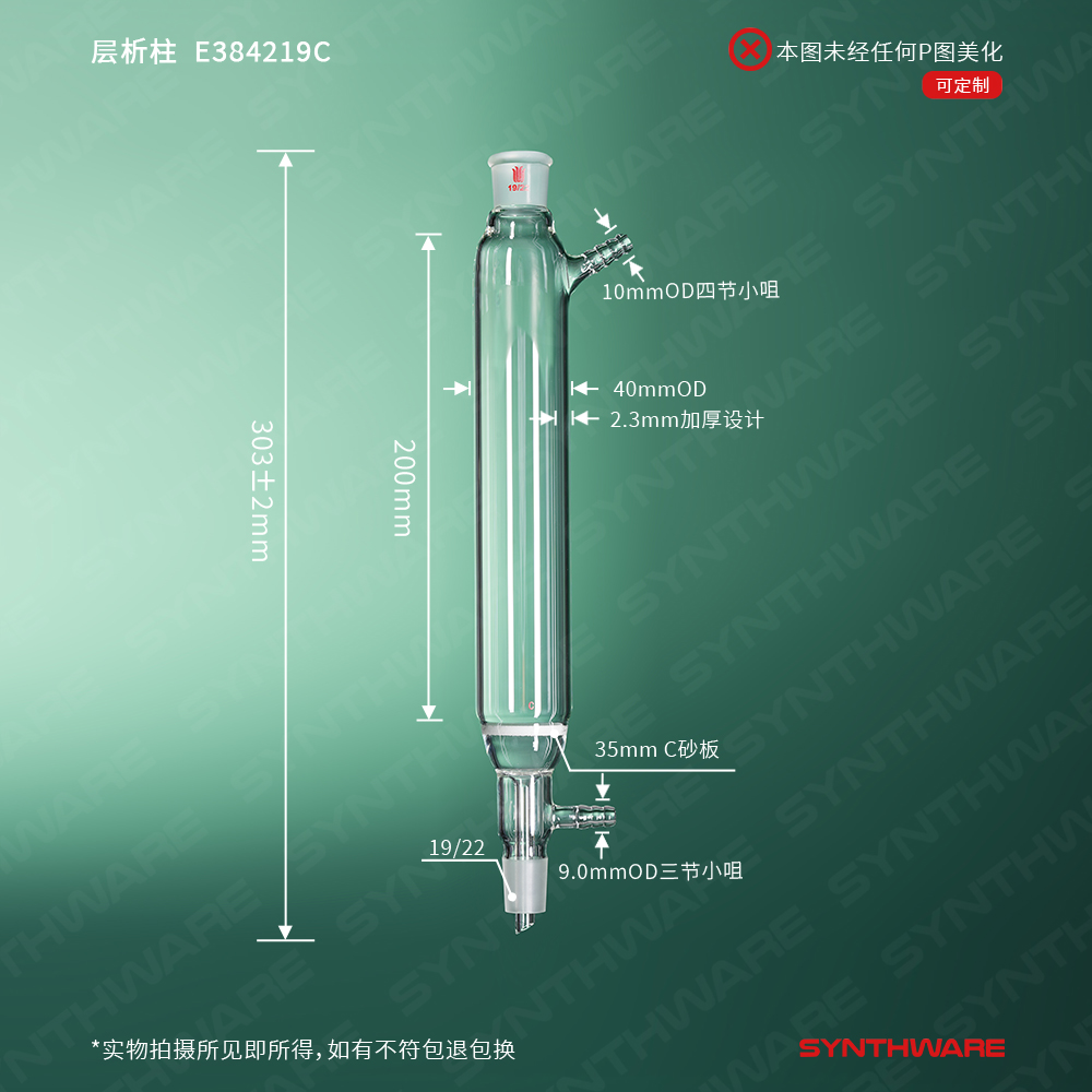 具小嘴减压层析柱,上下磨口19/22,管径:40mm,管长:200mm,C E384219C