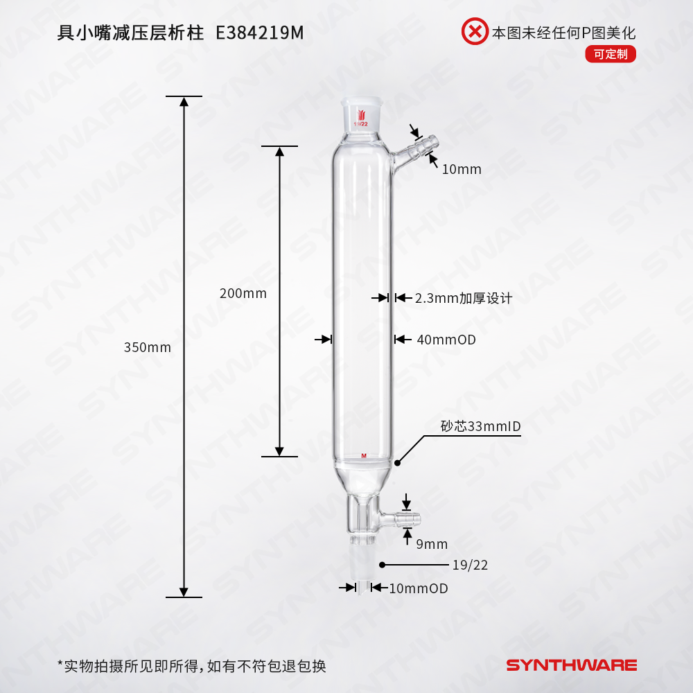 具小嘴减压层析柱,上下磨口19/22,管径:40mm,管长:200mm,M E384219M