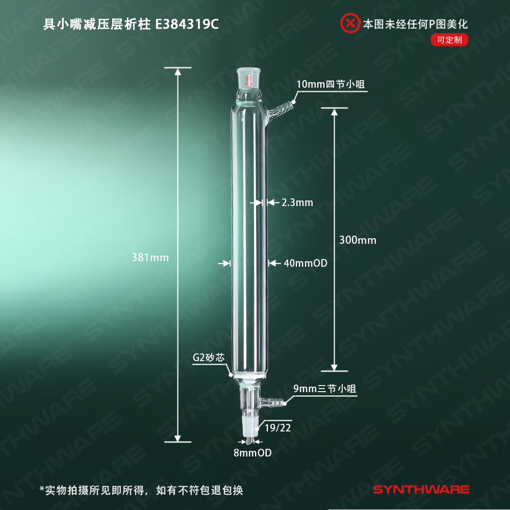 具小嘴减压层析柱,上下磨口19/22,管径:40mm,管长:300mm,C E384319C