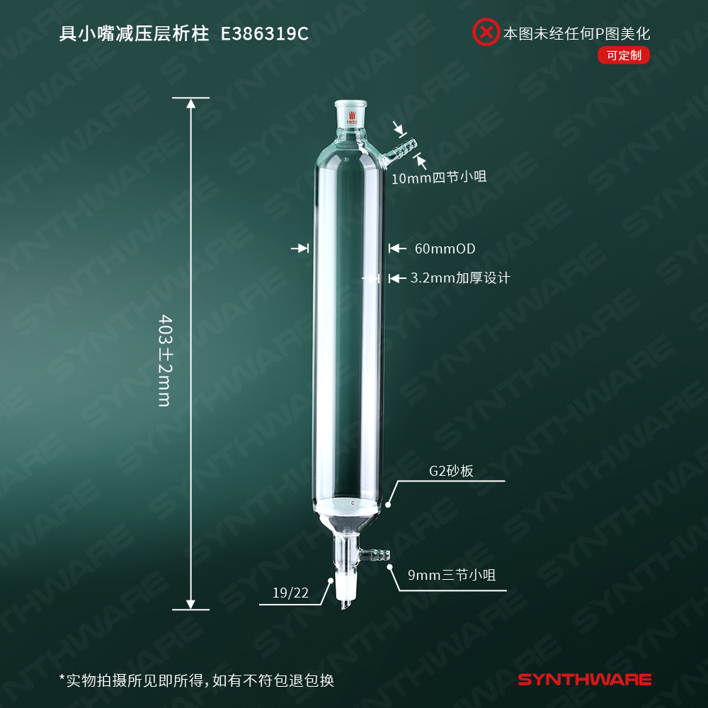 具小嘴减压层析柱,上下磨口19/22,管径:60mm,管长300mm,C E386319C