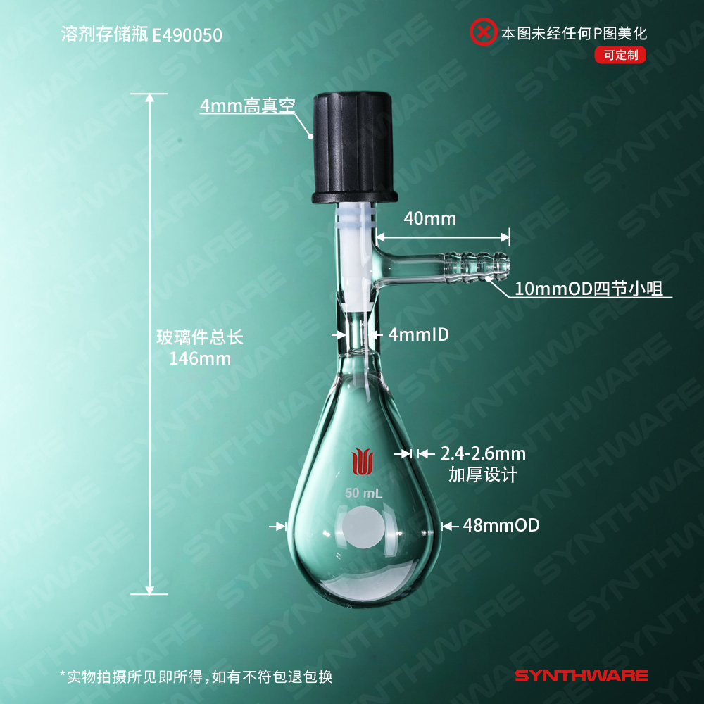 溶剂存储瓶,4mm高真空阀,50ml E490050