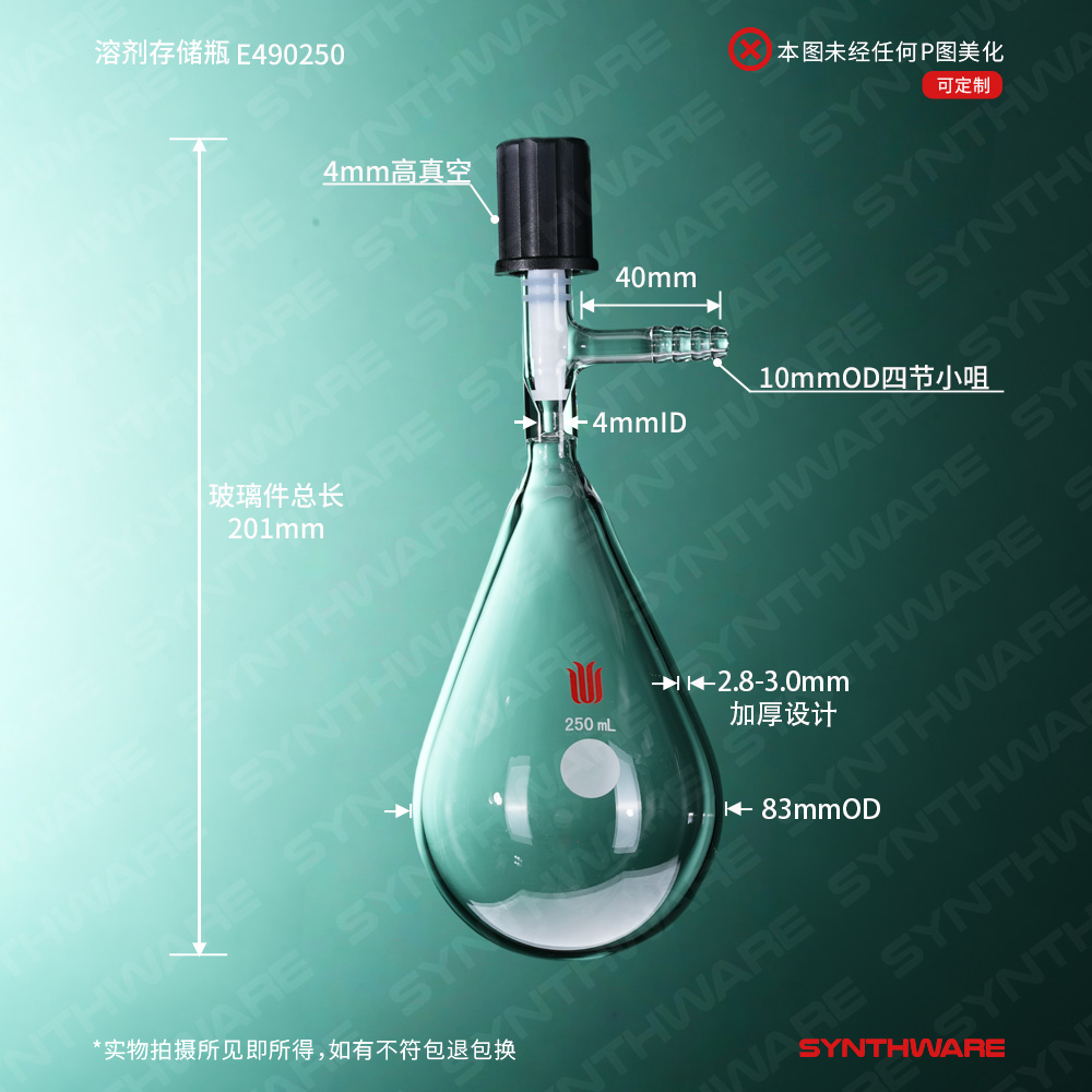 溶剂存储瓶,4mm高真空阀,100ml E490100