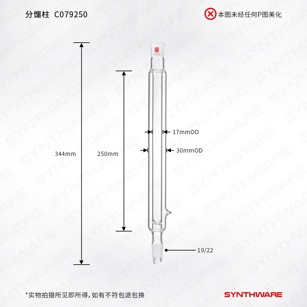 # 精馏柱上端内磨口由金刚砂研磨,锥度1:10经正弦规测试。下端外磨口由高精度无心磨制得,加厚设计,不易裂开,保证气密性。
