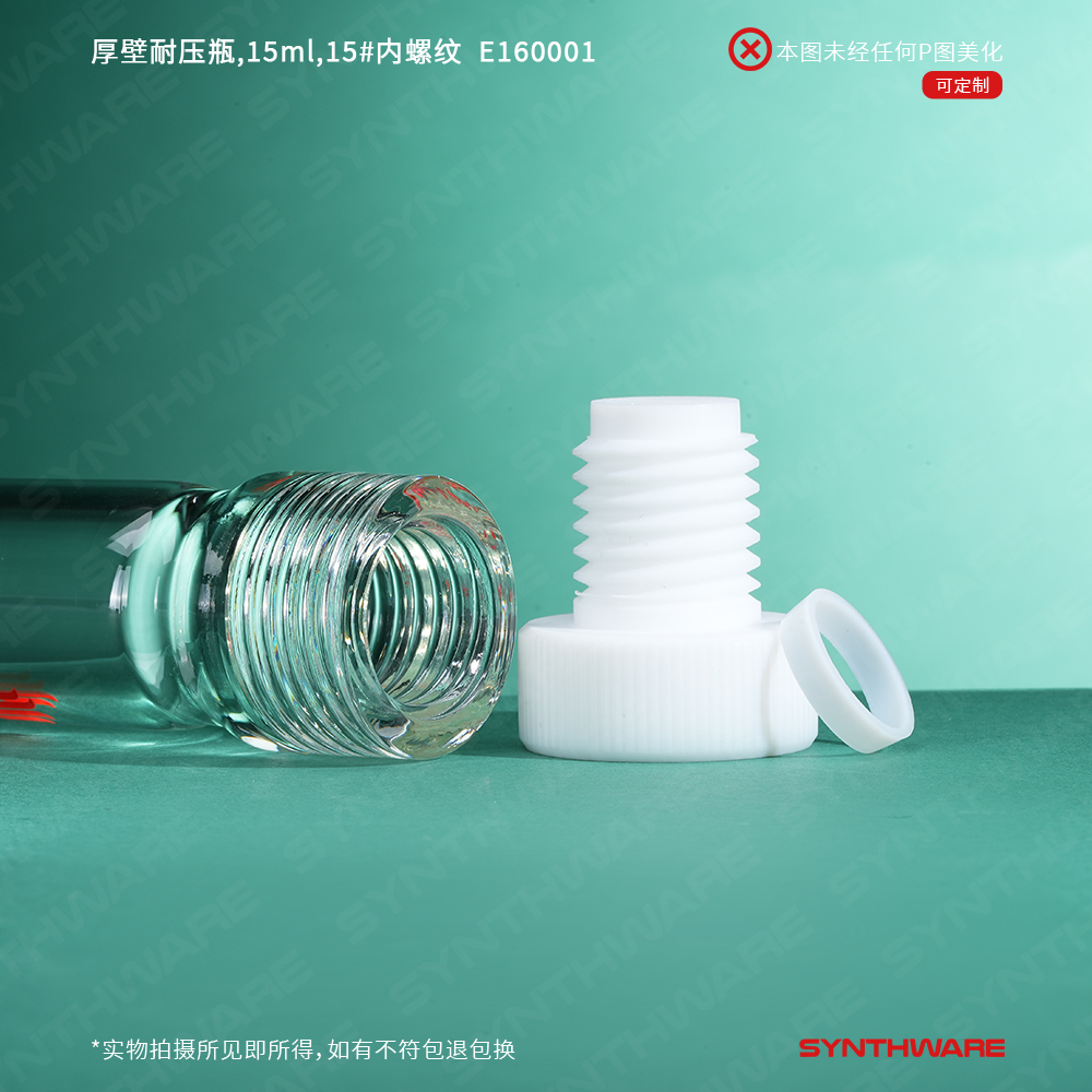 厚壁耐压瓶,15ml,15#内螺纹,标配可替换密封环四氟盖 E160001 E160001
