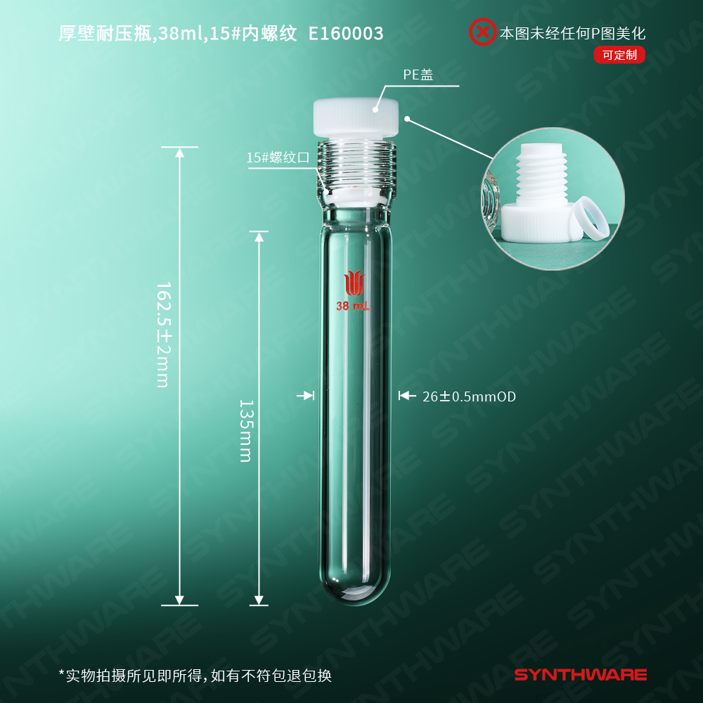 厚壁耐压瓶,38ml,15#内螺纹,标配可替换密封环四氟盖 E160003 E160003