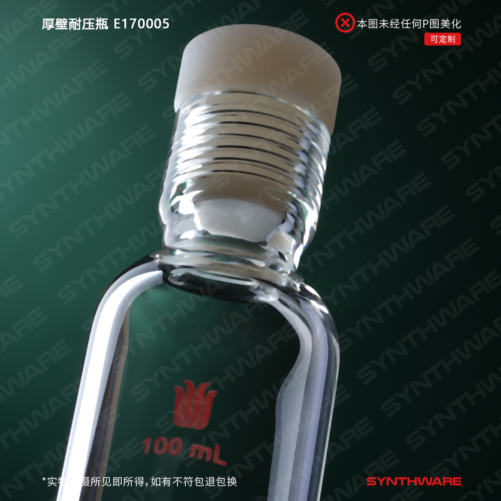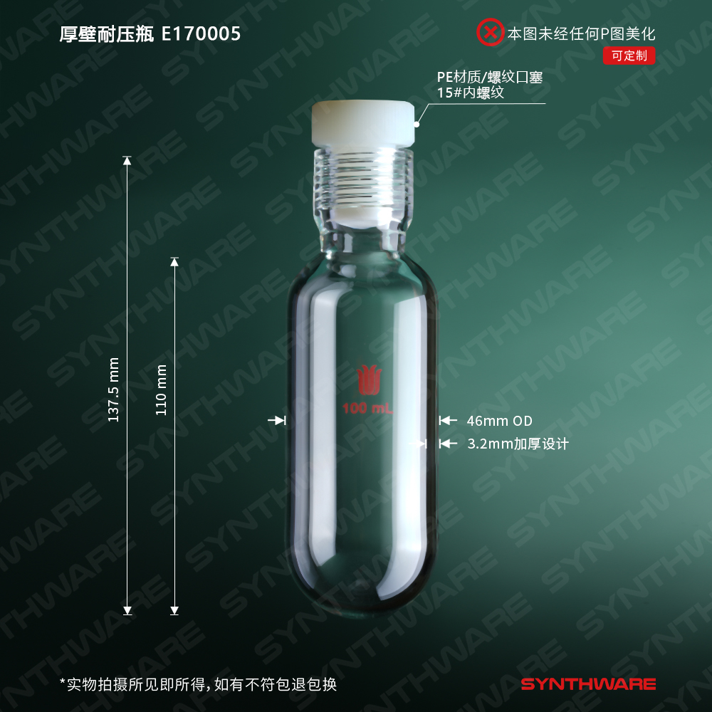 厚壁耐压瓶,100ml,15#内螺纹,标配可替换密封盖 PE盖 E170005 E170005