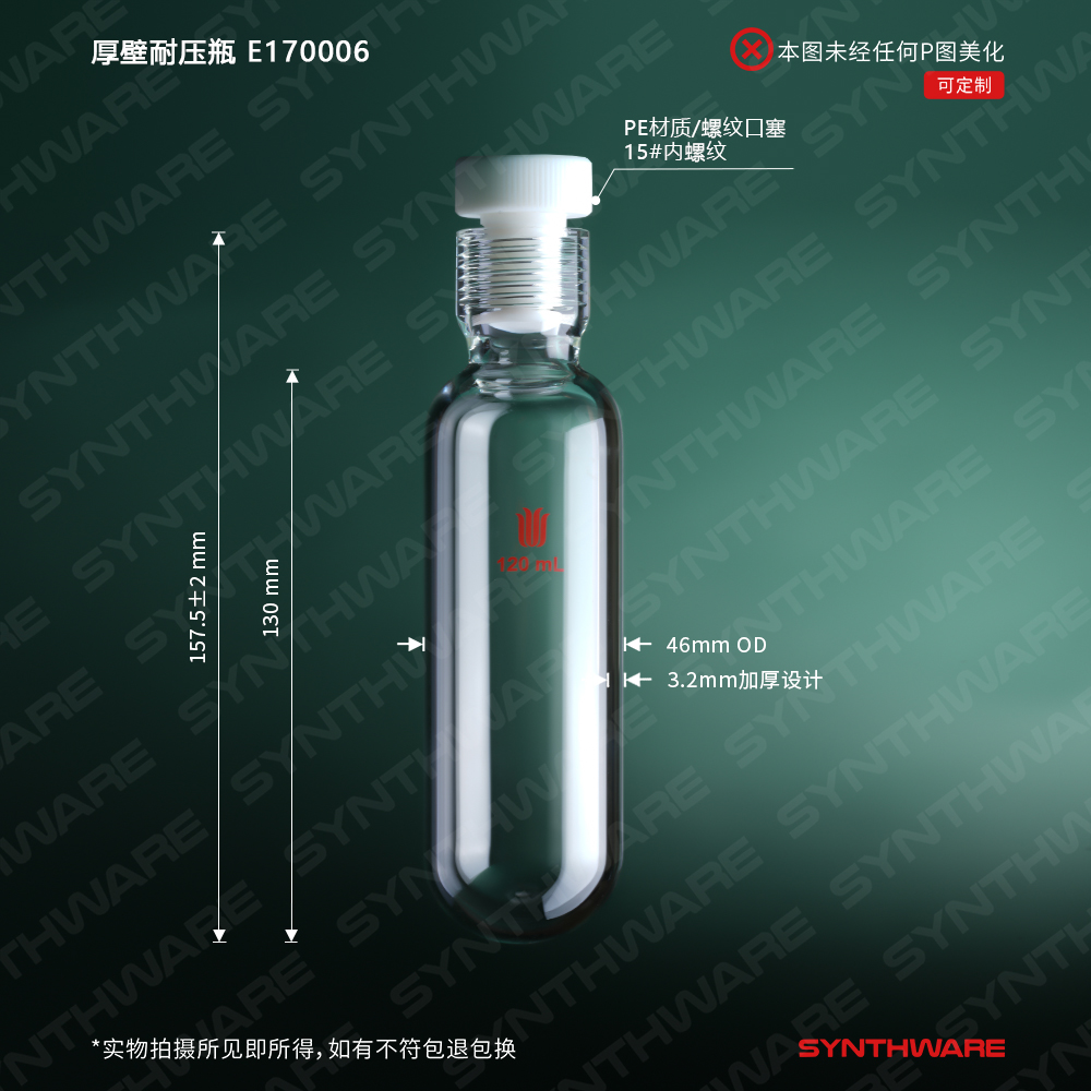厚壁耐压瓶,120ml,15#内螺纹,标配可替换密封盖 PE盖 E170006 E170006