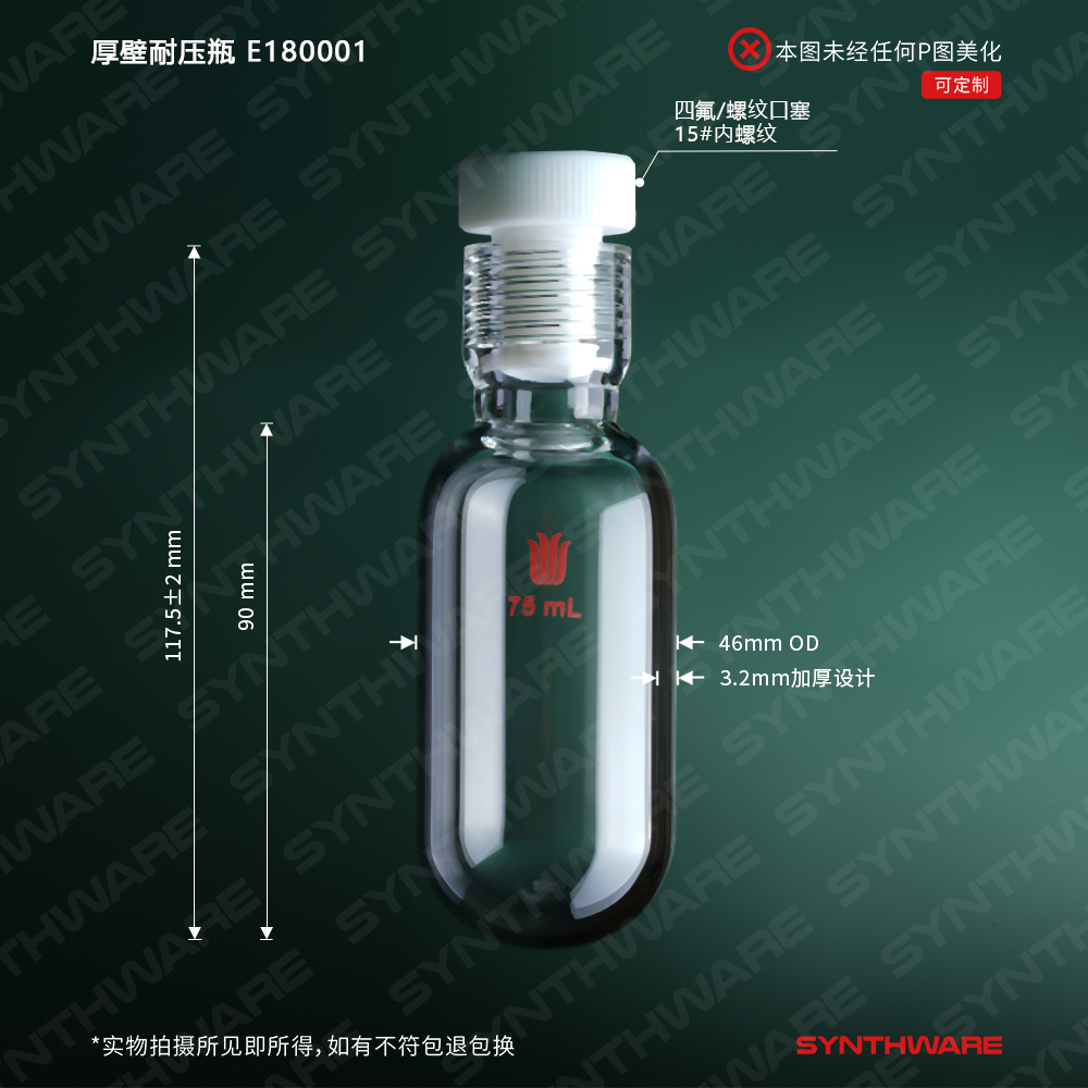 厚壁耐压瓶,75ml,15#内螺纹,标配可替换密封环四氟盖 E180001 E180001