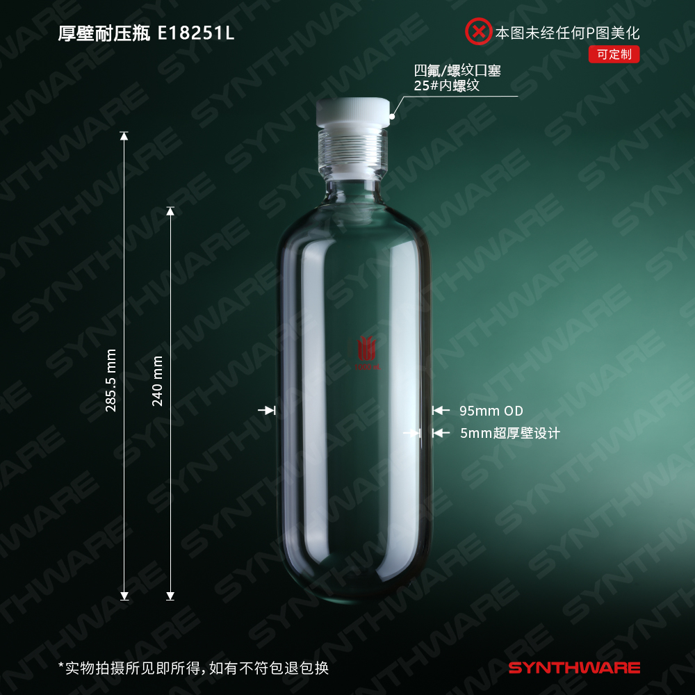 厚壁耐压瓶,1000ml,25#内螺纹,标配可替换密封环四氟盖 E18251L E18251L