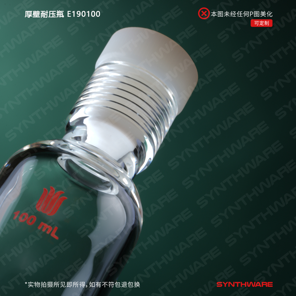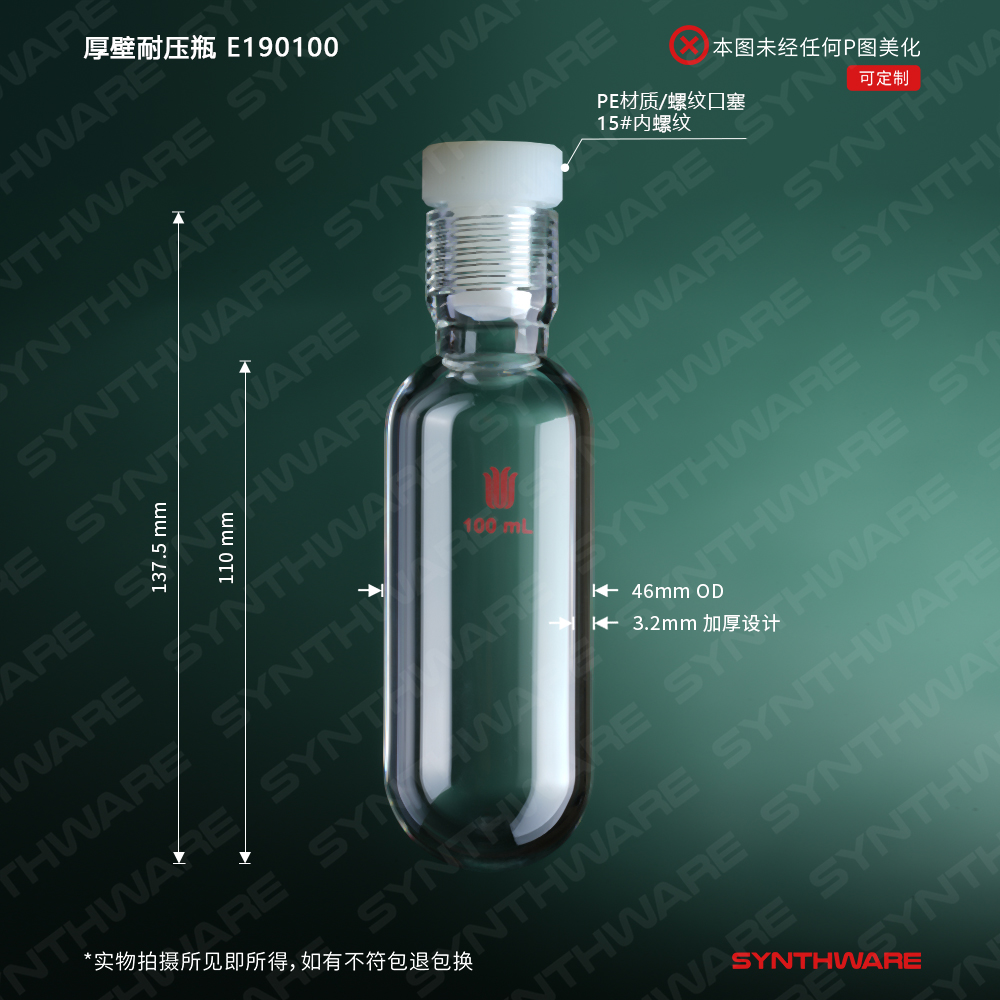 # 内螺纹厚壁耐压瓶,标配有PE材质螺纹盖以及可替换四氟密封盖(欣维尔专利产品2025204895739),耐溶剂腐蚀,密封性好,相较于四氟材质螺纹盖配全惰性O型圈组合,更加经济实惠。