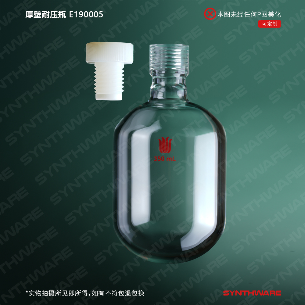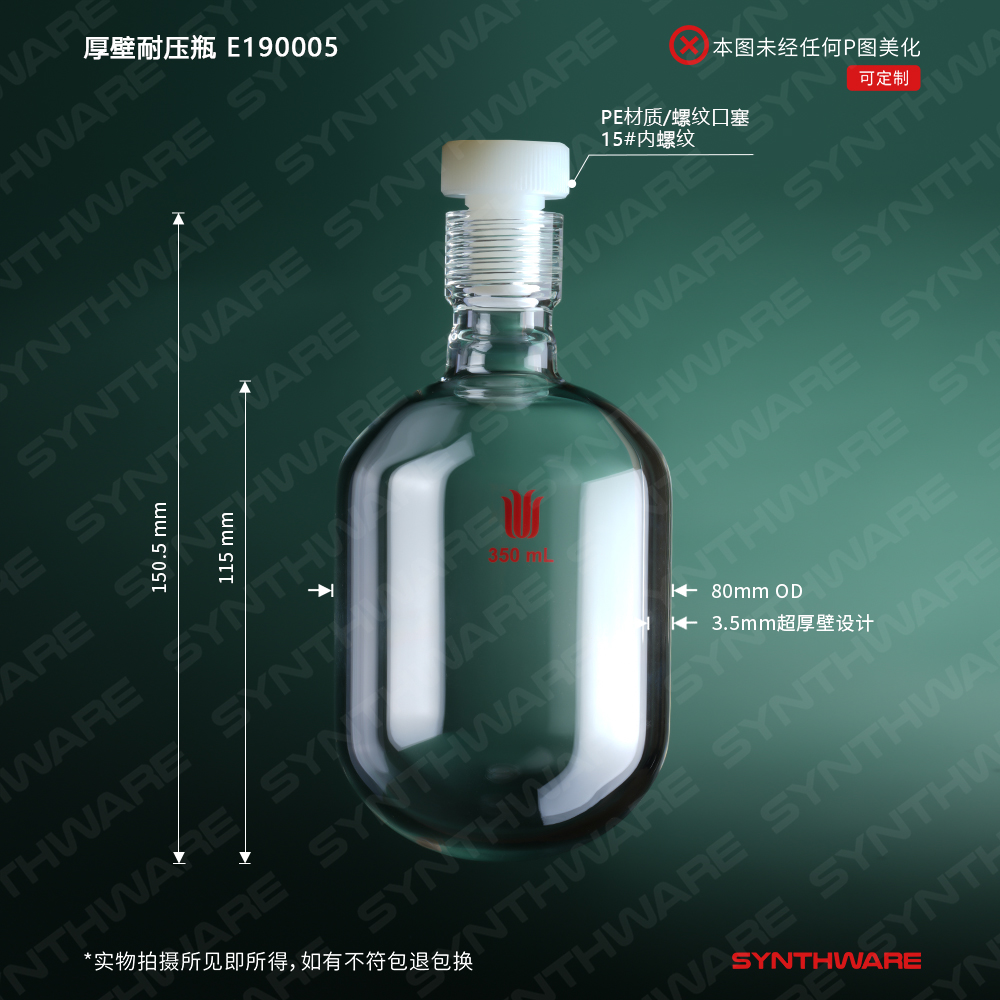 # 内螺纹厚壁耐压瓶,标配有PE材质螺纹盖以及可替换四氟密封盖(欣维尔专利产品2025204895739),耐溶剂腐蚀,密封性好,相较于四氟材质螺纹盖配全惰性O型圈组合,更加经济实惠。