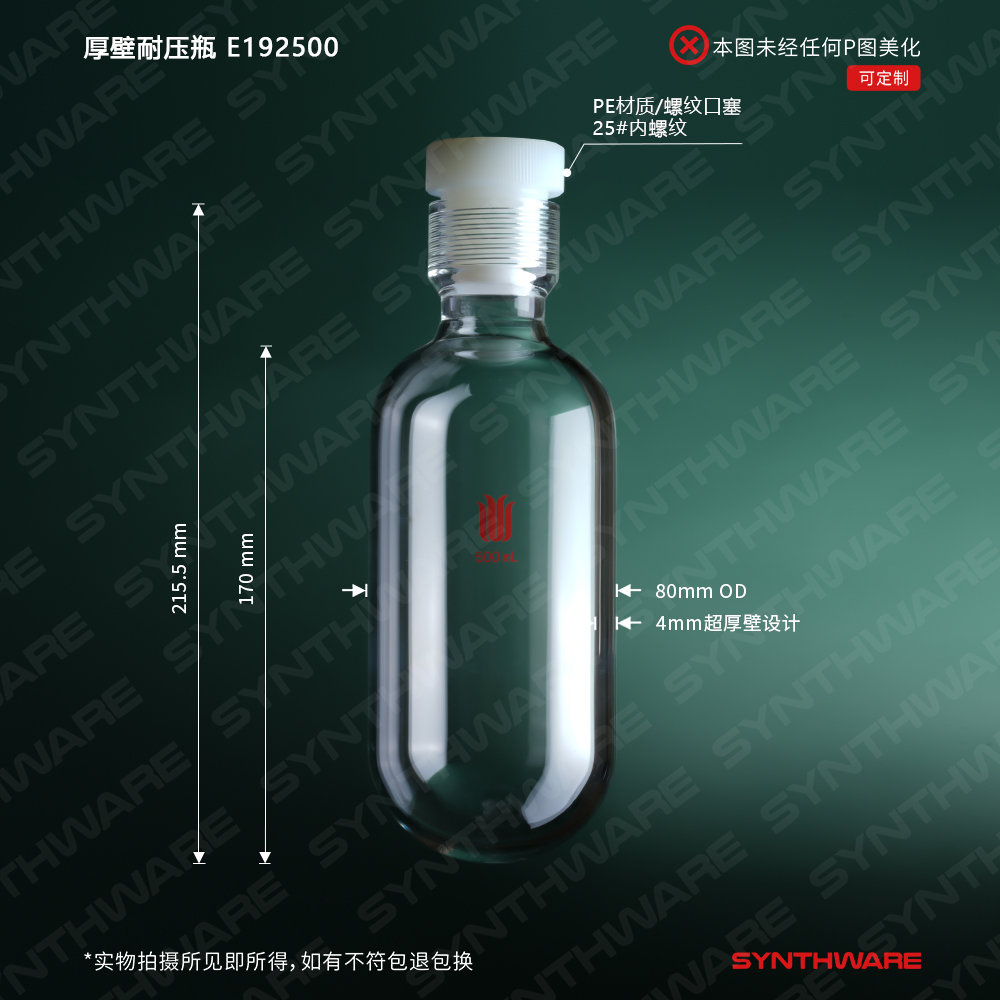 厚壁耐压瓶,500ml,25#内螺纹,标配可替换密封盖 PE盖 E192500 E192500