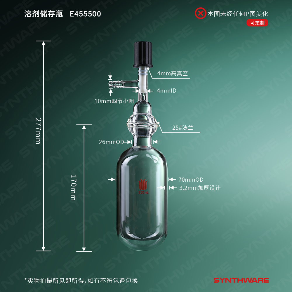 溶剂存储瓶,分体式,直筒型,25#法兰连接头,4mm高真空阀,500ml E455500 E455500