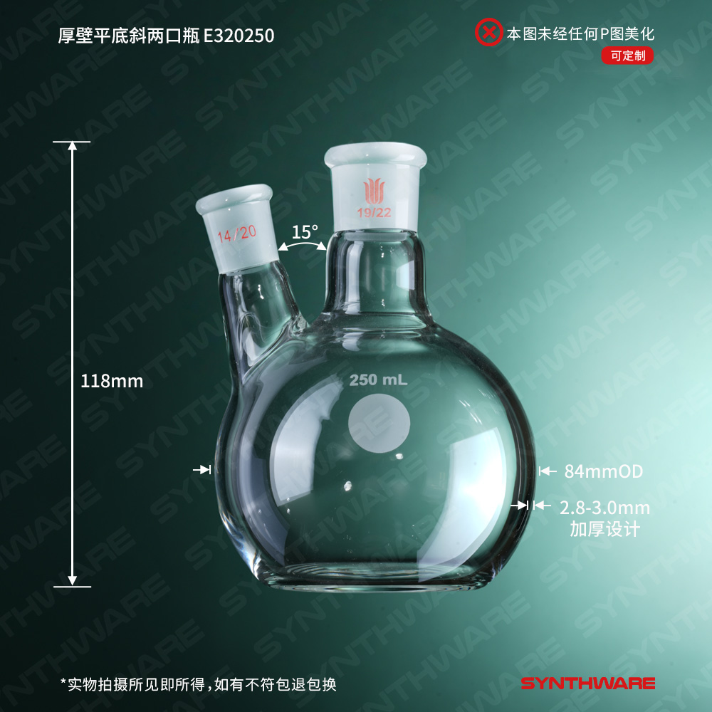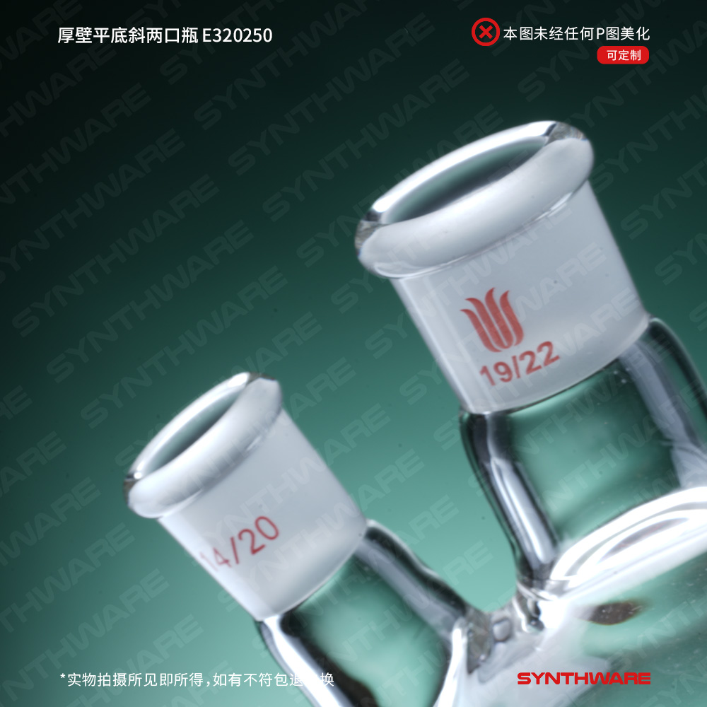 厚壁平底斜两口瓶,高强度,中间磨口:24/40,侧磨口:24/40,250ml E324250