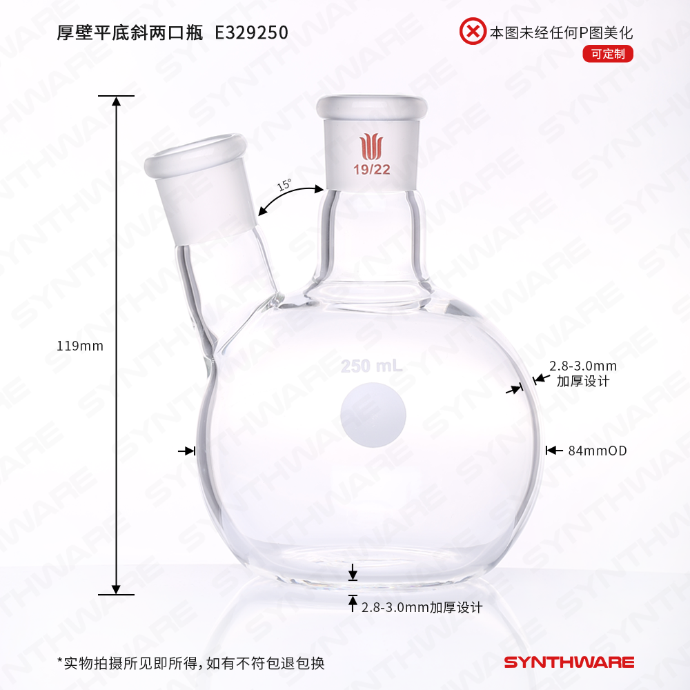 厚壁平底斜两口瓶,高强度,中间磨口:24/40,侧磨口:24/40,250ml E324250