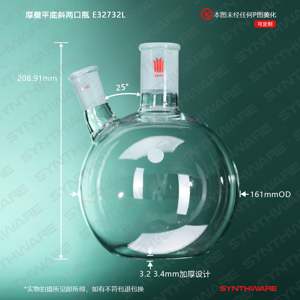 厚壁平底斜两口瓶,高强度,中间磨口:34/45,侧磨口:24/40,3000ml E32833L