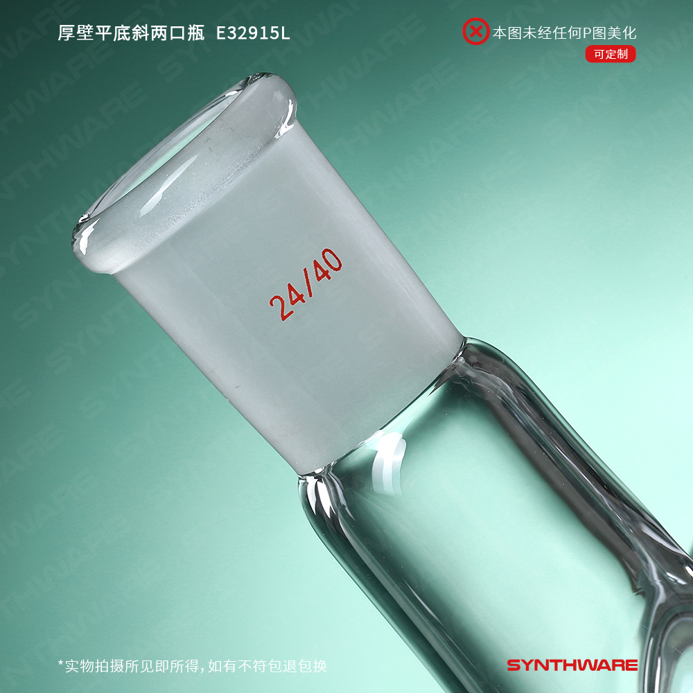 厚壁平底斜两口瓶,高强度,中间磨口:24/40,侧磨口:24/40,100ml E324400