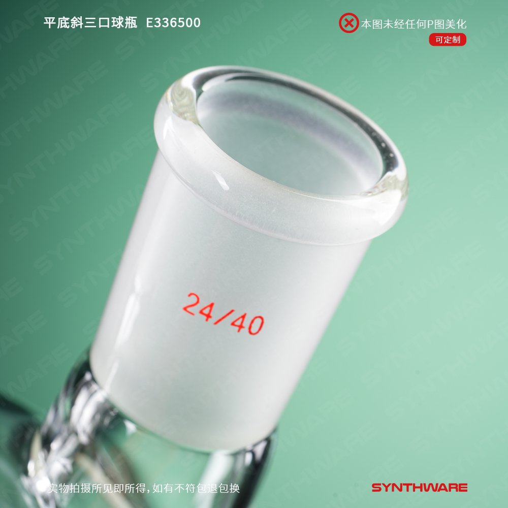 平底斜三口球瓶,厚壁高强度,中间磨口:24/40,侧磨口:24/40,500ml E334500