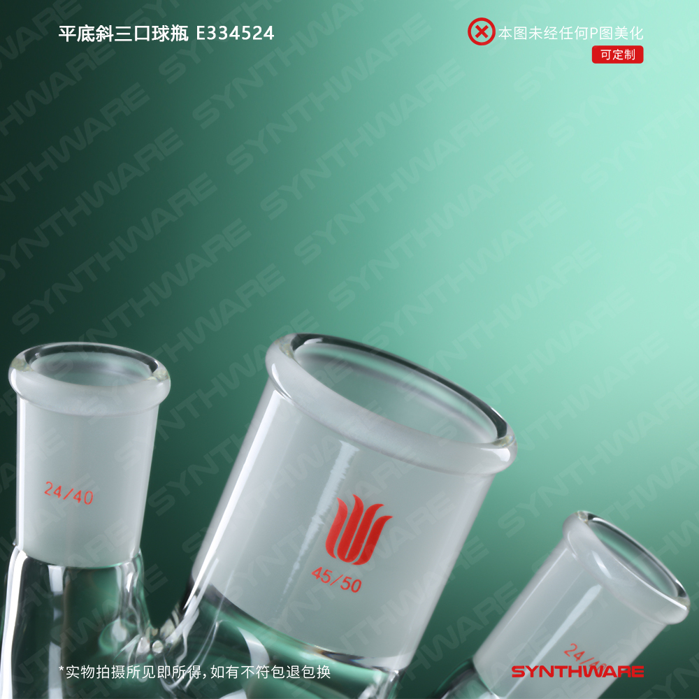 平底斜三口球瓶,厚壁高强度,中间磨口:34/45,侧磨口:24/40,1000ml E331034