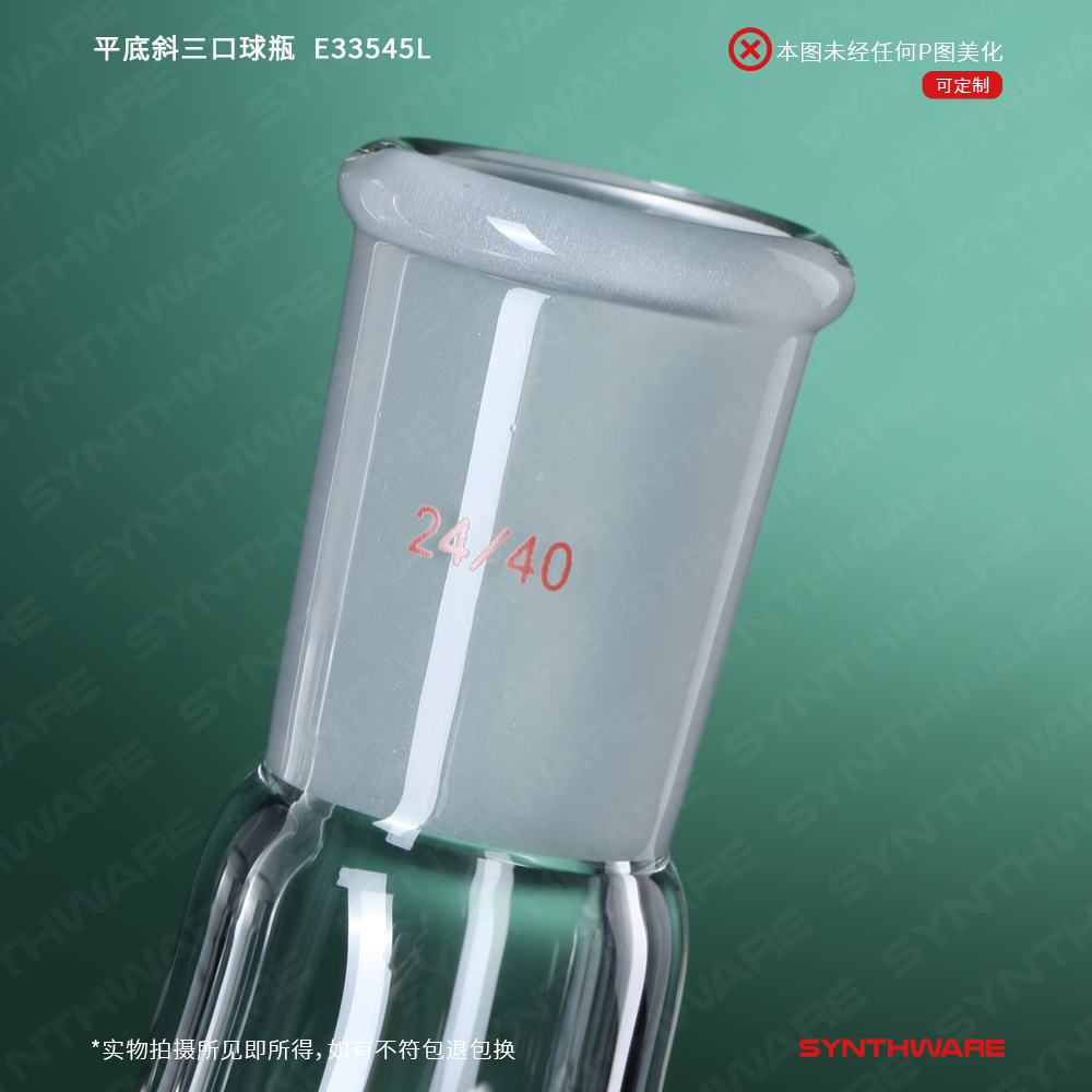 平底斜三口球瓶,厚壁高强度,中间磨口:34/45,侧磨口:24/40,1000ml E331034
