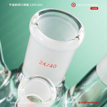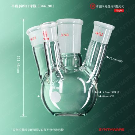 平底斜四口球瓶,中间口:24/40,侧磨口:14/20,前口:14/20,100ml E344100