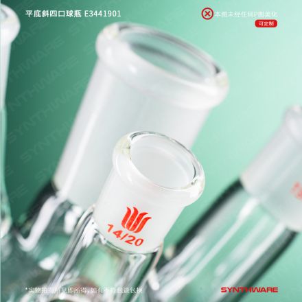 平底斜四口球瓶,中间口:14/20,侧磨口:14/20,前口:14/20,100ml E341100