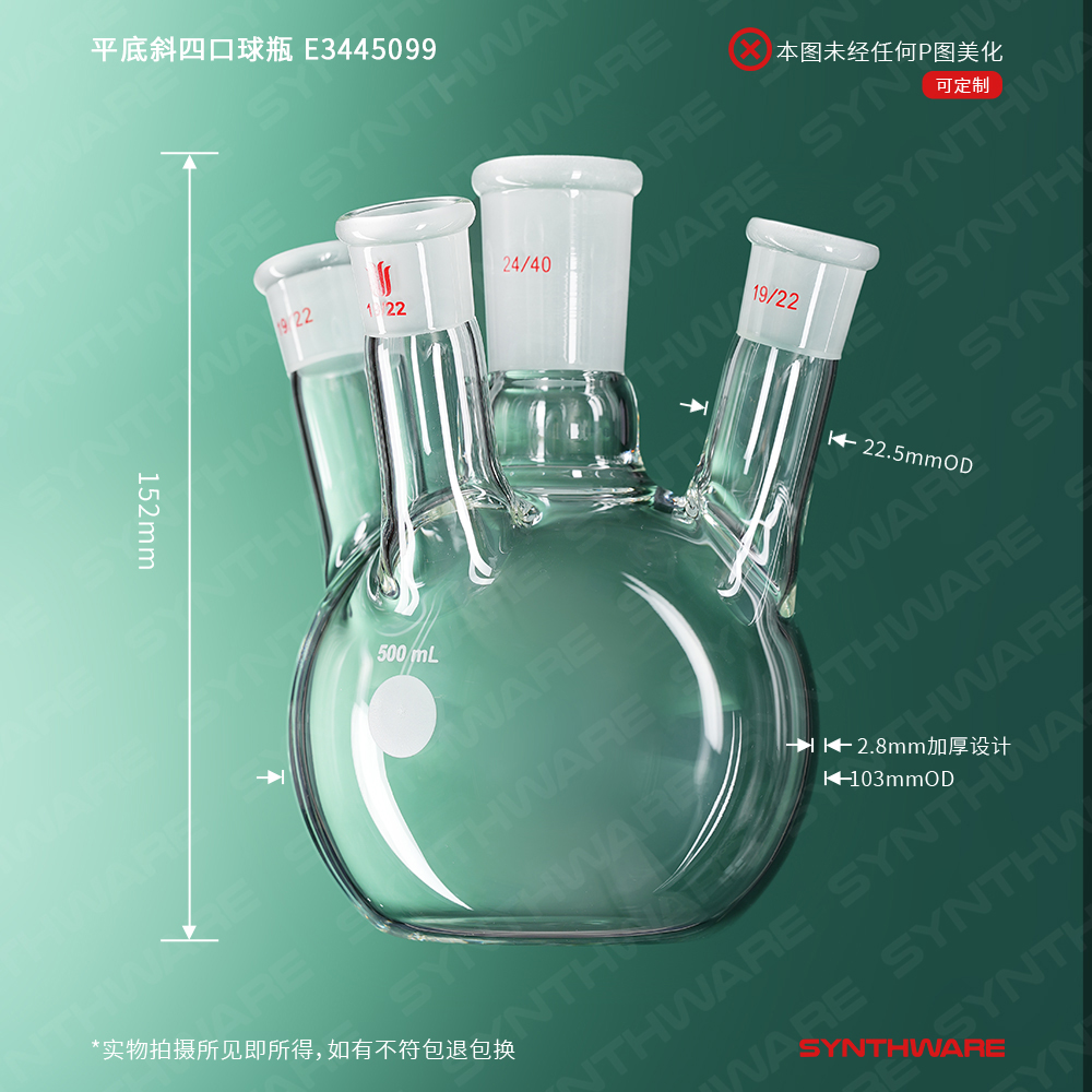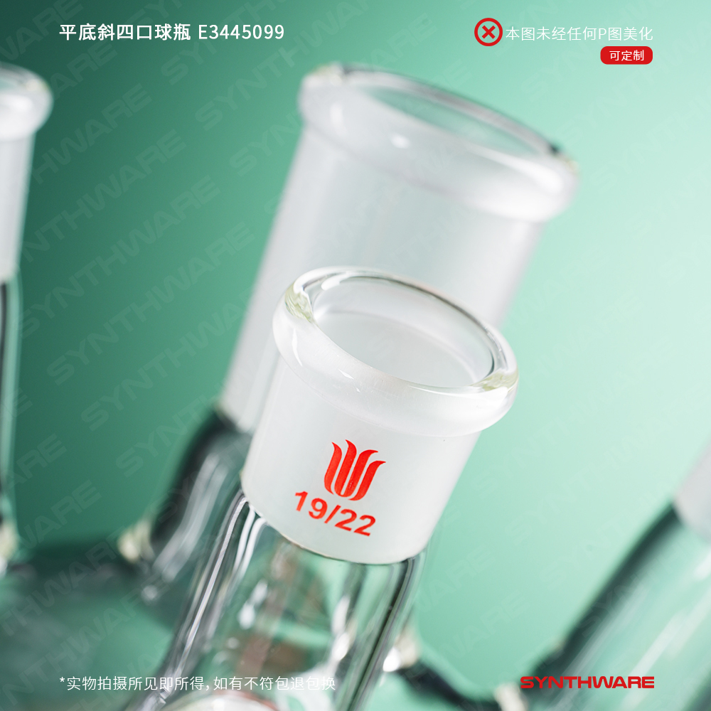 平底斜四口球瓶,中间口:19/22,侧磨口:19/22,前口:19/22,500ml E3495099