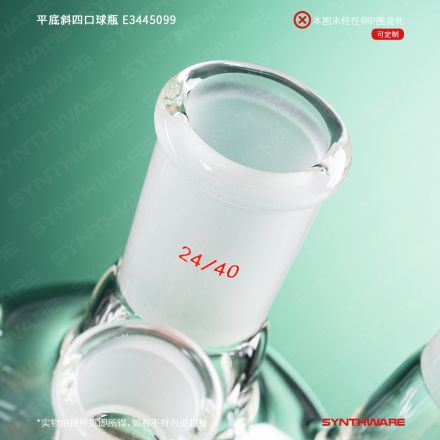 平底斜四口球瓶,中间口:24/40,侧磨口:14/20,前口:14/20,100ml E344100