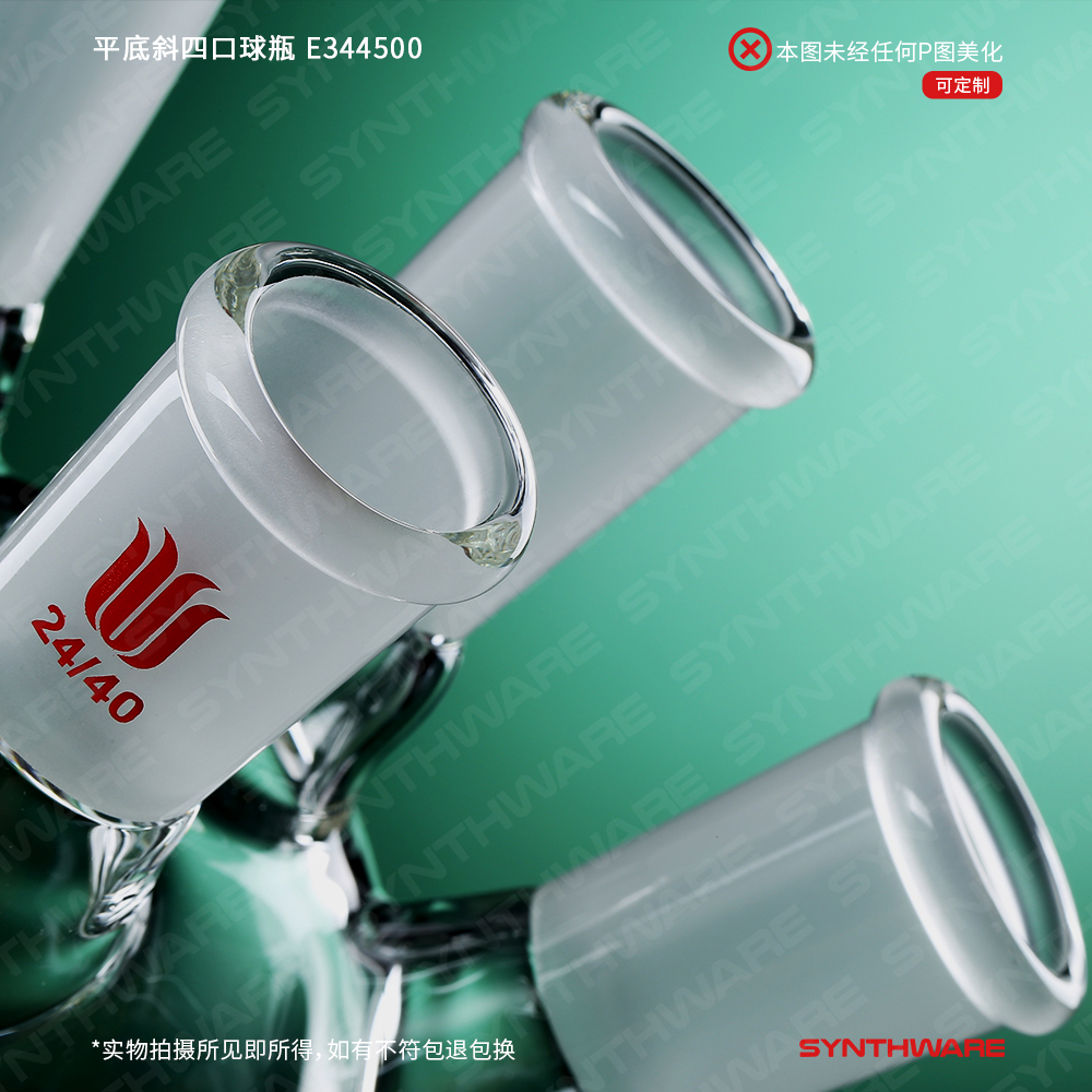 平底斜四口球瓶,中间口:24/40,侧磨口:24/40,前口:24/40,100ml E344400