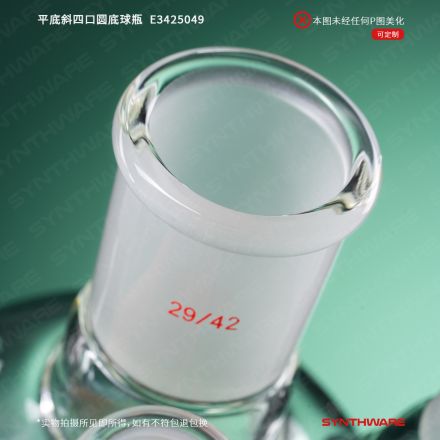 平底斜四口圆底球瓶,中磨口:29/42,侧口:24/40,前口:19/22,1000ml E3480049